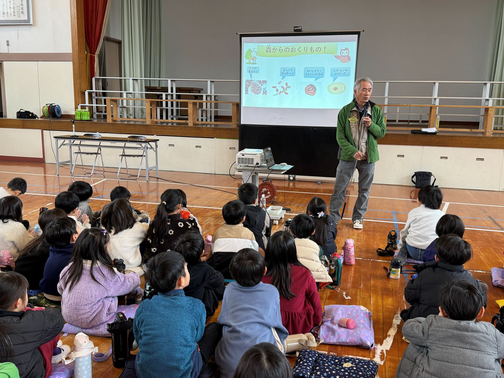 🍃2025 年 11 月 26 日 (水) 08 時 30 分 ~ 10 時 30 分🍃1年生3クラス95人🍃福岡市内の小学校で1年生を対象にネイチャークラフトを実施するのは初です。どんな反応があるか楽しみにしていましたが、期待に違わず、個性豊かな作品がどんどん生まれました。今まで見たことのない木の実や形、これまで嗅いだことのない木の枝の香りなどに振れ、自然の素材に親しみを抱いている、そんな風景が広がっていました。こうした素材は森からの贈り物だということを感じ取り、森への愛着を深めてくれたらと願います。