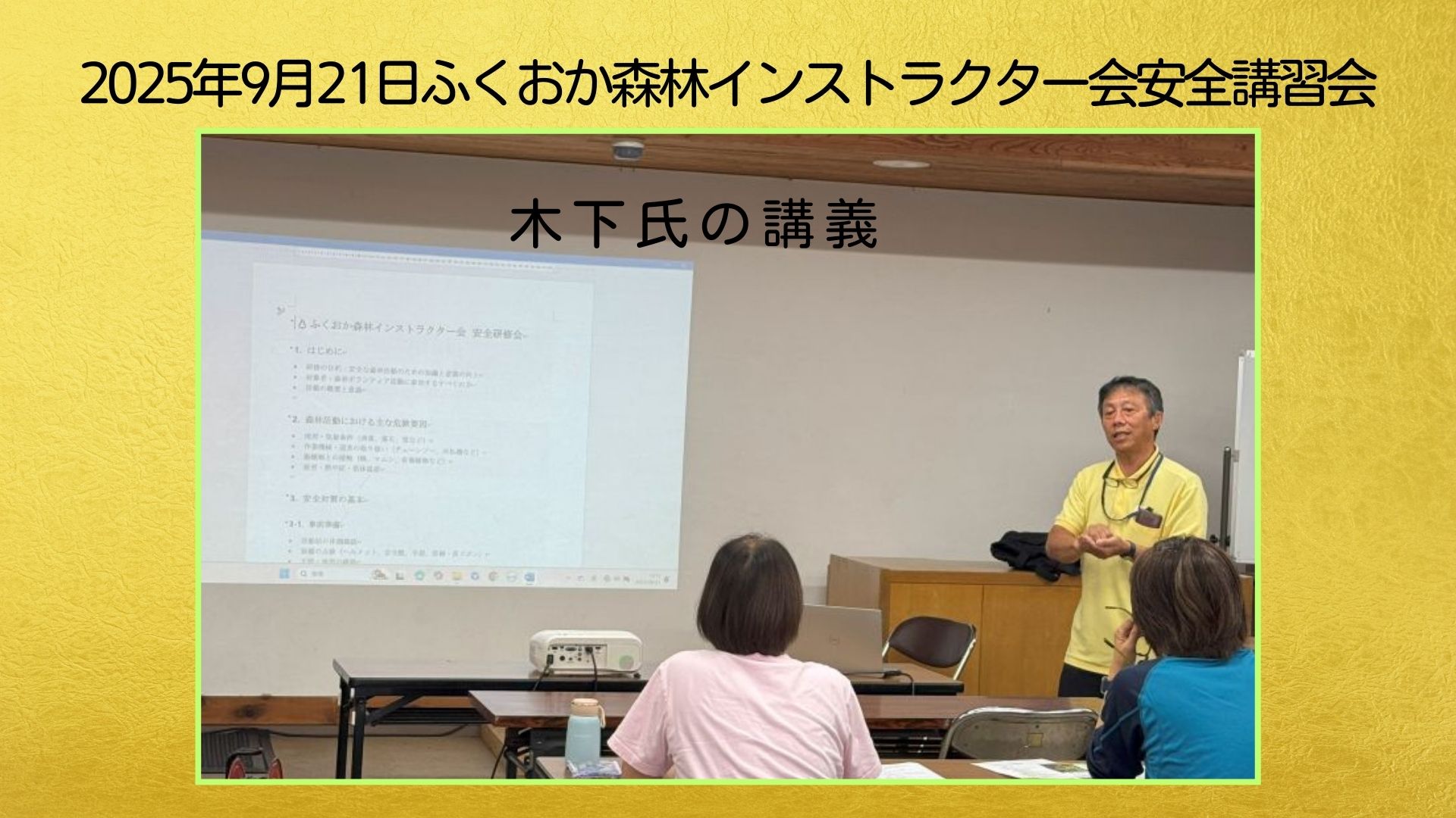 🍃2025 年 9 月 21 日 (日) 10 時 00 分 ~ 14 時 30 分🍃場所:四王寺県民の森🍃野外活動に於ける安全管理と応急手当についての研修会(午前:木下氏の講義、午後:粕屋南部消防署の応急手当講習)を実施しました。午前中は活動におけるリスクマネージメントについて、午後は、それでも事故等が起きた場合の対応方法についての有意義な研修となりました。